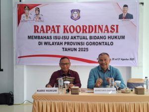 Kepala Biro Hukum, Mohamad Trizal Entengo saat ditemui menyampaikan bahwa kegiatan ini merupakan tindak lanjut Rakor antara Menteri Dalam Negeri dengan seluruh kepala daerah dalam menyikapi berbagai perkambangan hukum di daerah yang dapat berdampak luas.